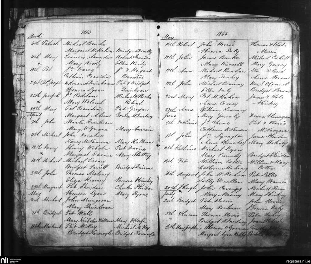 Killone; County of Clare; Diocese of Killaloe. Baptisms, Mar. 1863 to July 1863