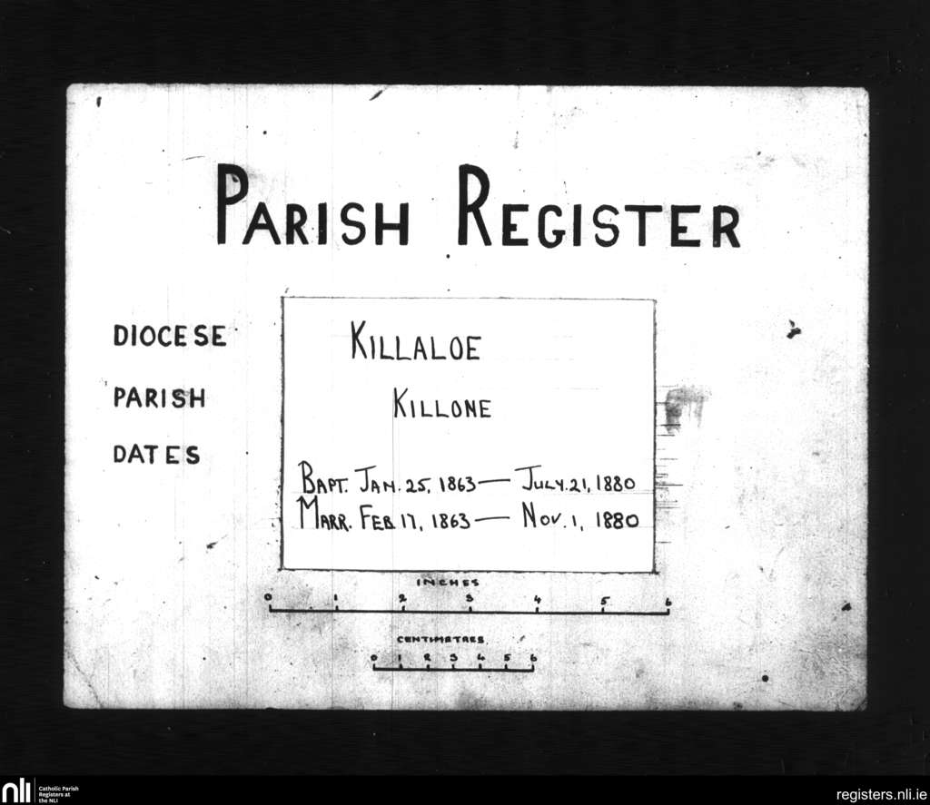 Killone; County of Clare; Diocese of Killaloe. Baptisms, Marriages