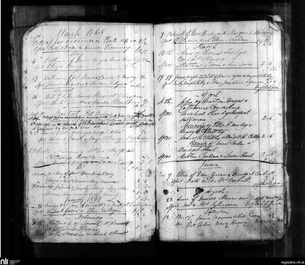 Killone; County of Clare; Diocese of Killaloe. Baptisms, Mar. 1868 to Sep. 1869