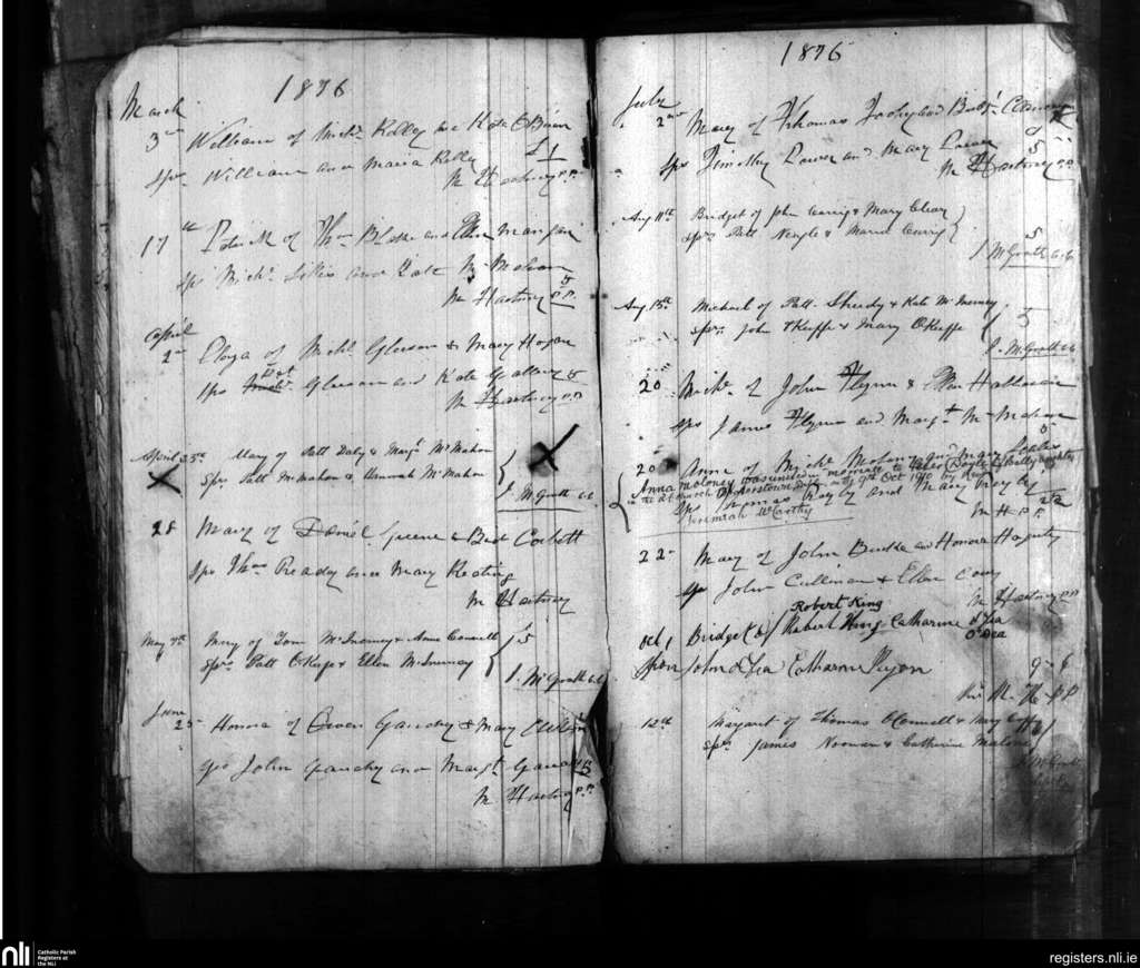 Killone; County of Clare; Diocese of Killaloe. Baptisms, Mar. 1876 to Oct. 1876