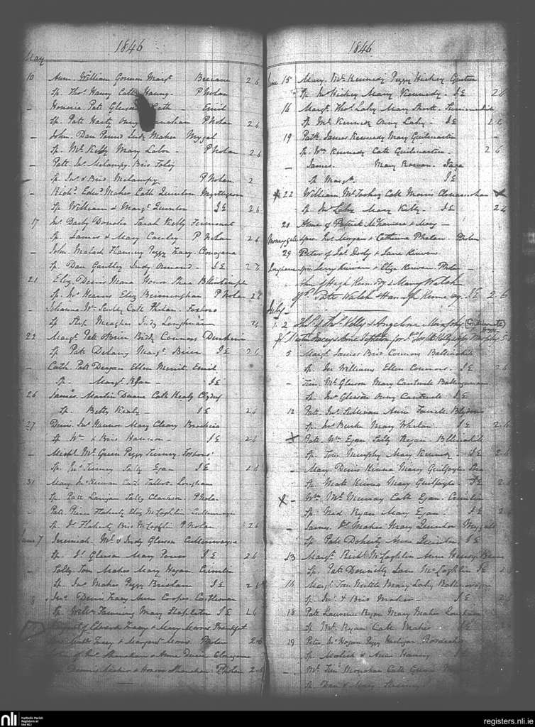 Moneygall; County of Offaly, Tipperary; Diocese of Killaloe. Baptisms, May 1846 to July 1846