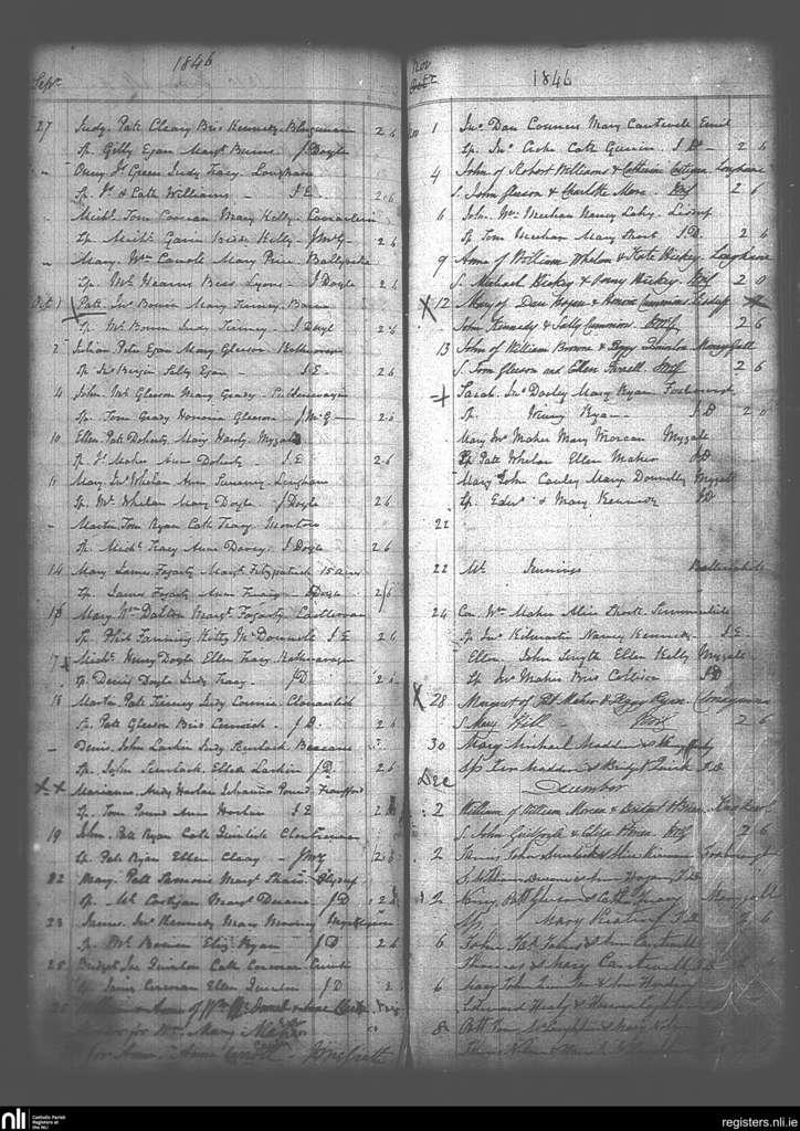 Moneygall; County of Offaly, Tipperary; Diocese of Killaloe. Baptisms, Sep. 1846 to Dec. 1846