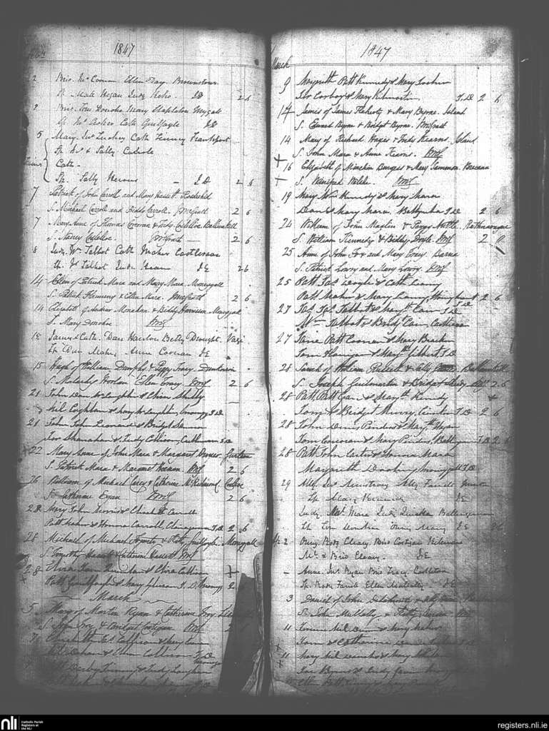 Moneygall; County of Offaly, Tipperary; Diocese of Killaloe. Baptisms, Feb. 1847 to Apr. 1847