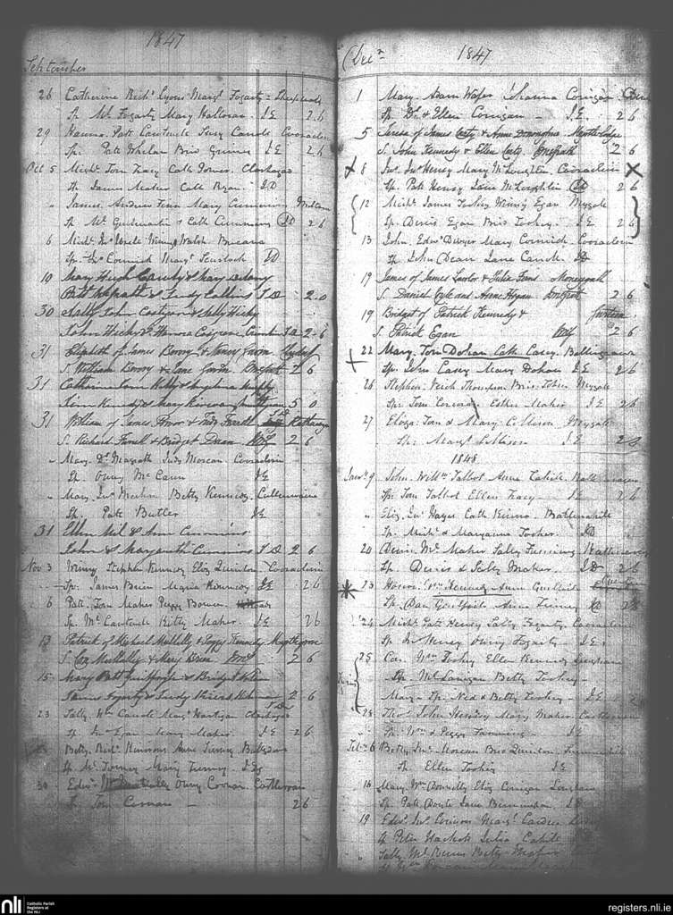 Moneygall; County of Offaly, Tipperary; Diocese of Killaloe. Baptisms, Sep. 1847 to Feb. 1848