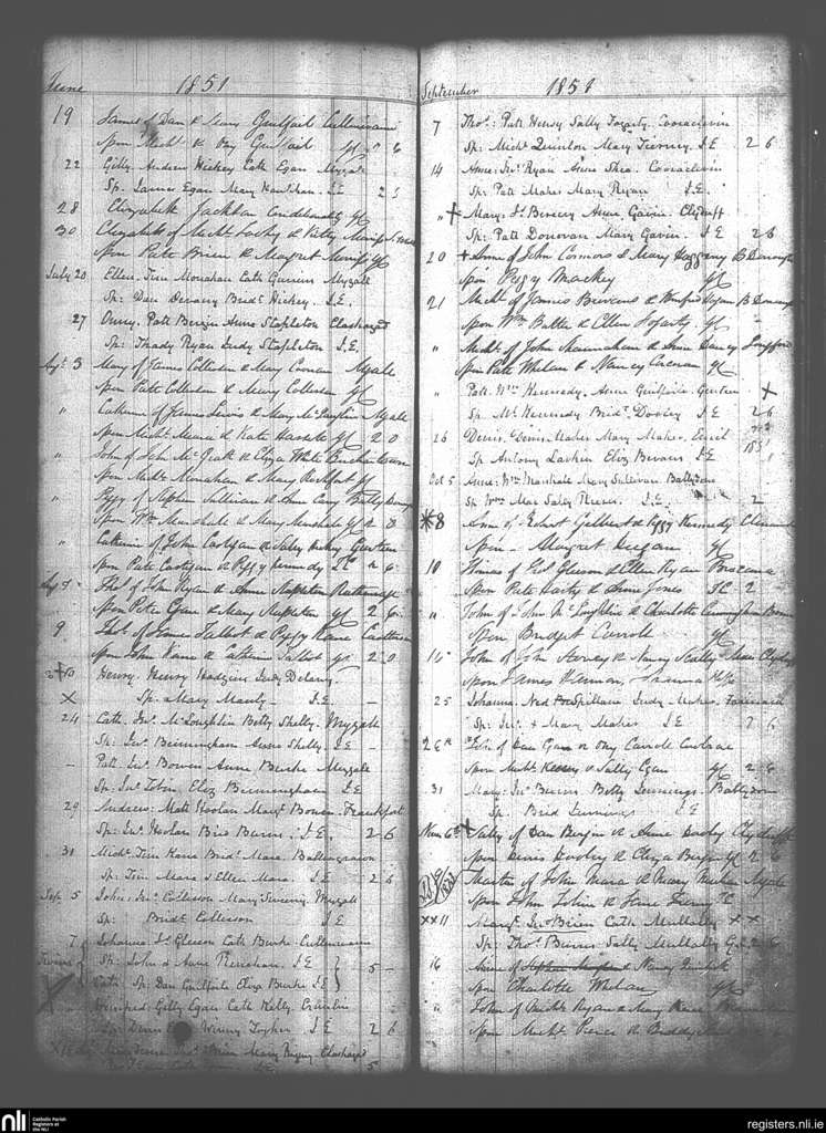 Moneygall; County of Offaly, Tipperary; Diocese of Killaloe. Baptisms, June 1851 to Nov. 1851