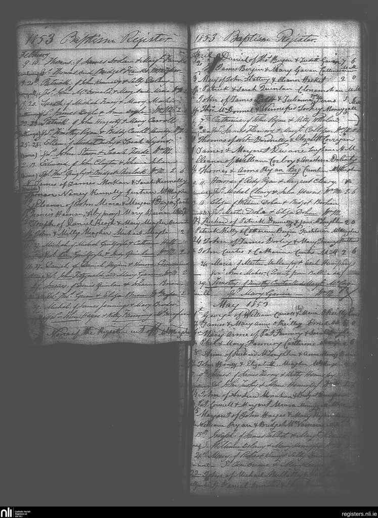 Moneygall; County of Offaly, Tipperary; Diocese of Killaloe. Baptisms, Feb. 1853 to May 1853