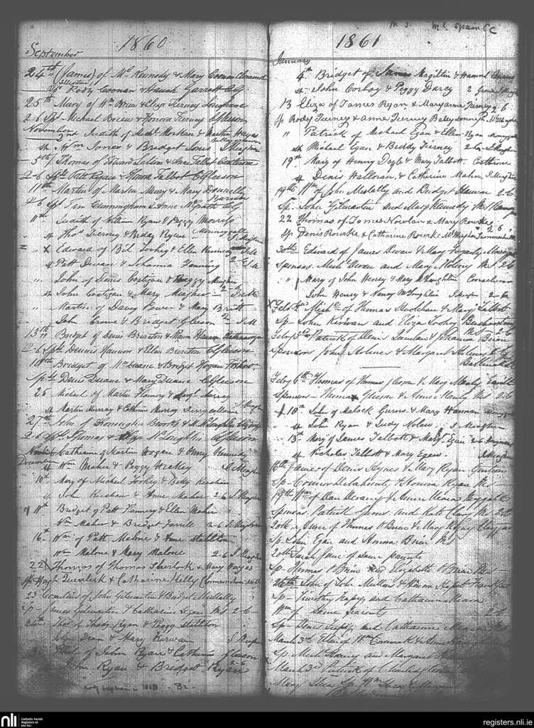 Moneygall; County of Offaly, Tipperary; Diocese of Killaloe. Baptisms, Sep. 1860 to Mar. 1861