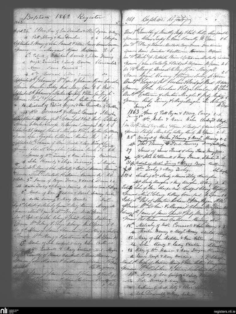 Moneygall; County of Offaly, Tipperary; Diocese of Killaloe. Baptisms, Aug. 1862 to Mar. 1863