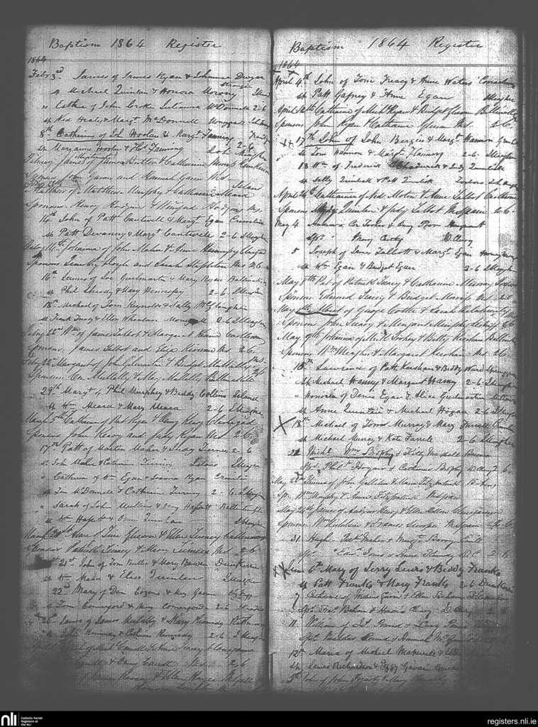 Moneygall; County of Offaly, Tipperary; Diocese of Killaloe. Baptisms, Feb. 1864 to June 1864