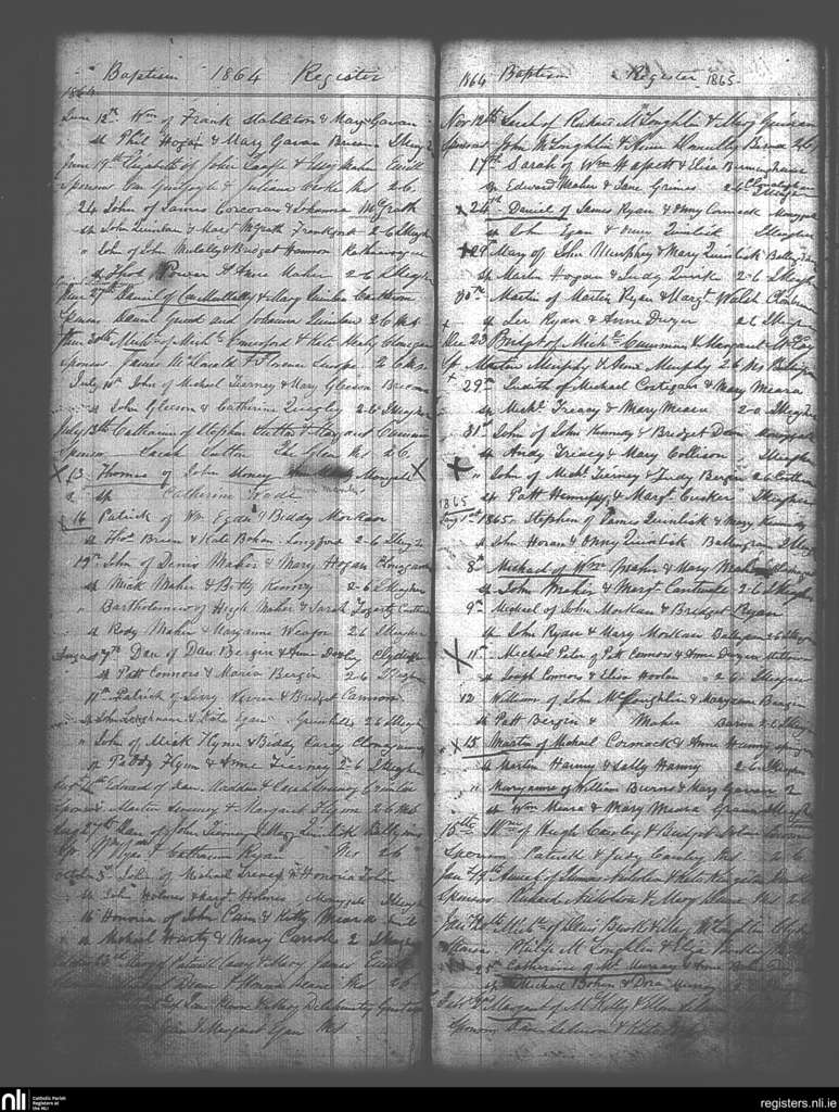 Moneygall; County of Offaly, Tipperary; Diocese of Killaloe. Baptisms, June 1864 to Feb. 1865