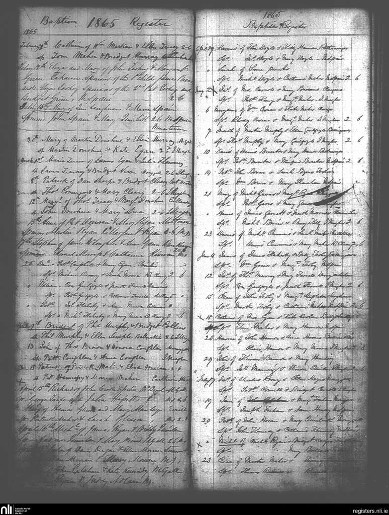 Moneygall; County of Offaly, Tipperary; Diocese of Killaloe. Baptisms, Feb. 1865 to July 1865
