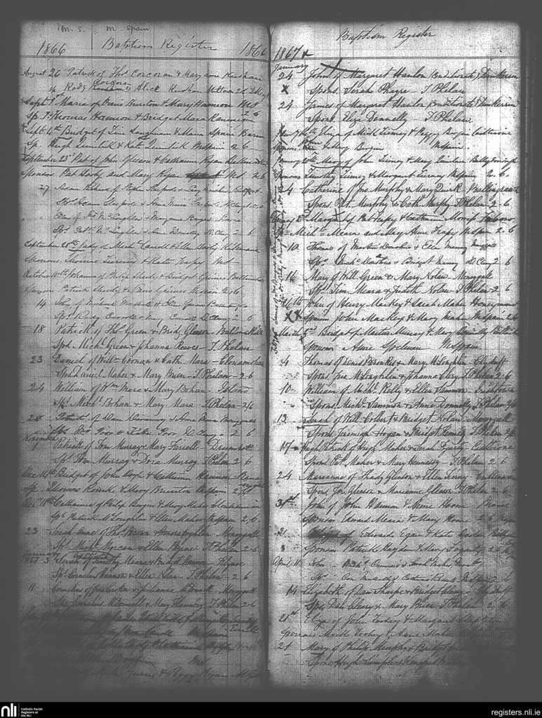 Moneygall; County of Offaly, Tipperary; Diocese of Killaloe. Baptisms, Aug. 1866 to Apr. 1867