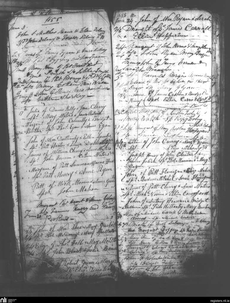 Birr and Loughkeen; County of Offaly, Tipperary; Diocese of Killaloe. Baptisms, June 1855 to July 1855