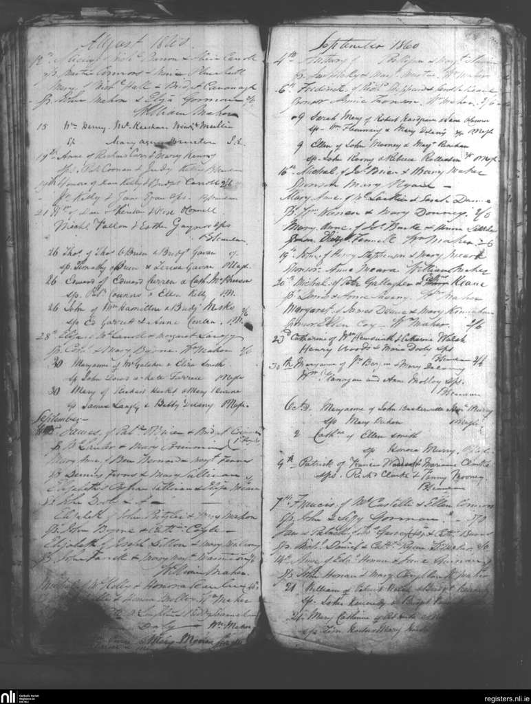 Birr and Loughkeen; County of Offaly, Tipperary; Diocese of Killaloe. Baptisms, Aug. 1860 to Oct. 1860