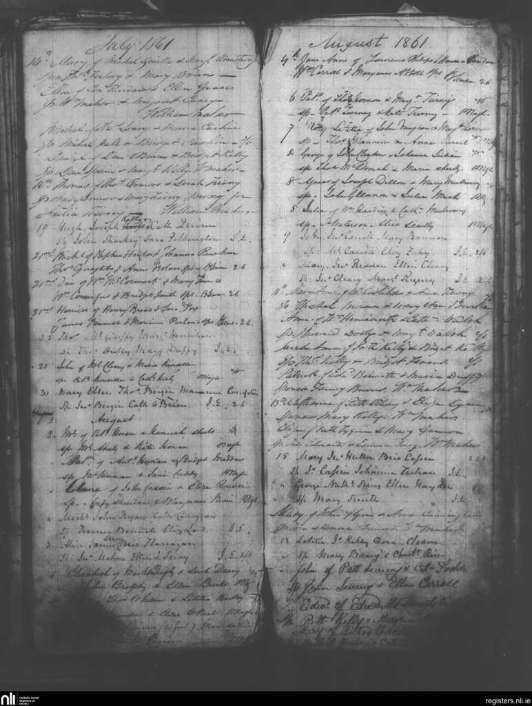 Birr and Loughkeen; County of Offaly, Tipperary; Diocese of Killaloe. Baptisms, July 1861 to Aug. 1861