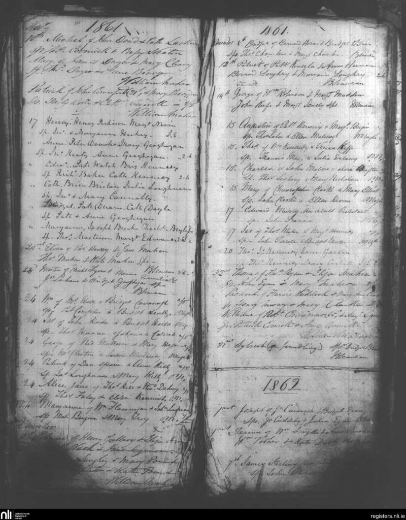 Birr and Loughkeen; County of Offaly, Tipperary; Diocese of Killaloe. Baptisms, Nov. 1861 to Jan. 1862