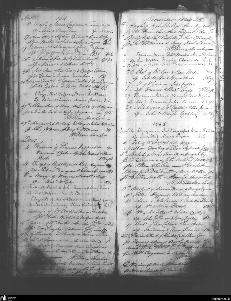 Birr and Loughkeen; County of Offaly, Tipperary; Diocese of Killaloe. Baptisms, Nov. 1864 to Jan. 1865