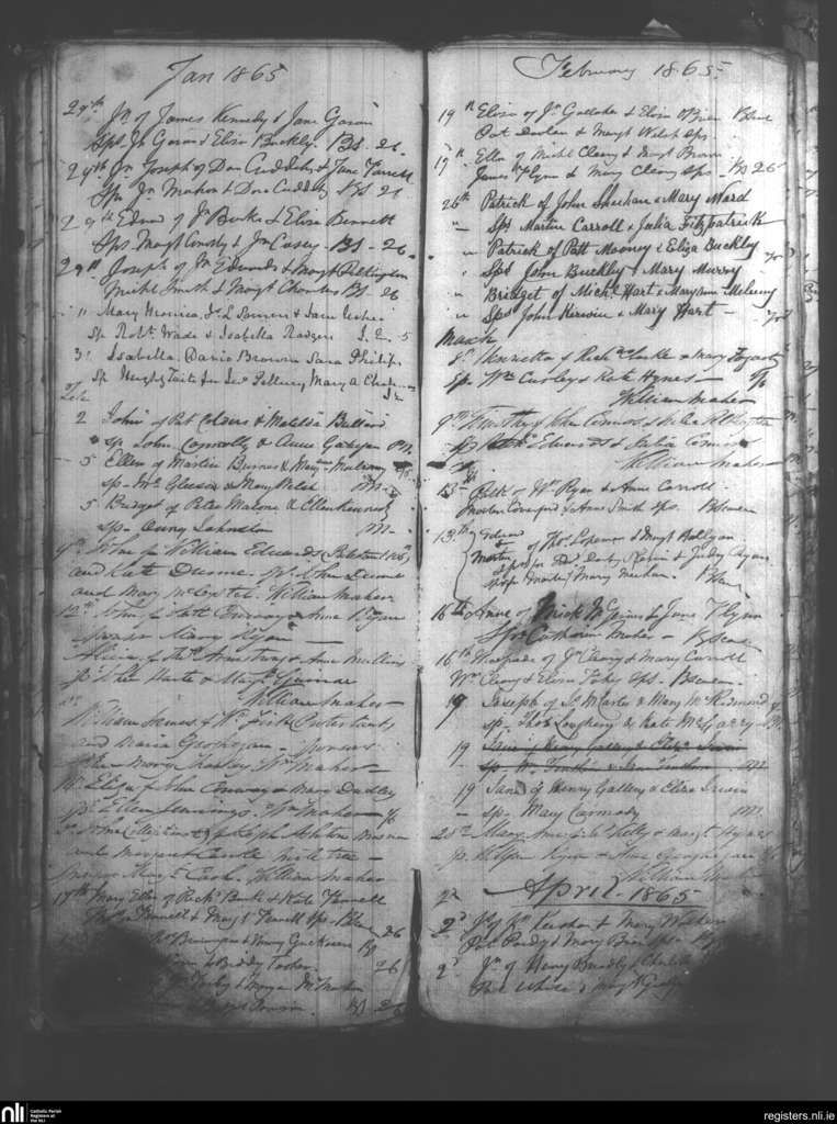 Birr and Loughkeen; County of Offaly, Tipperary; Diocese of Killaloe. Baptisms, Jan. 1865 to Apr. 1865