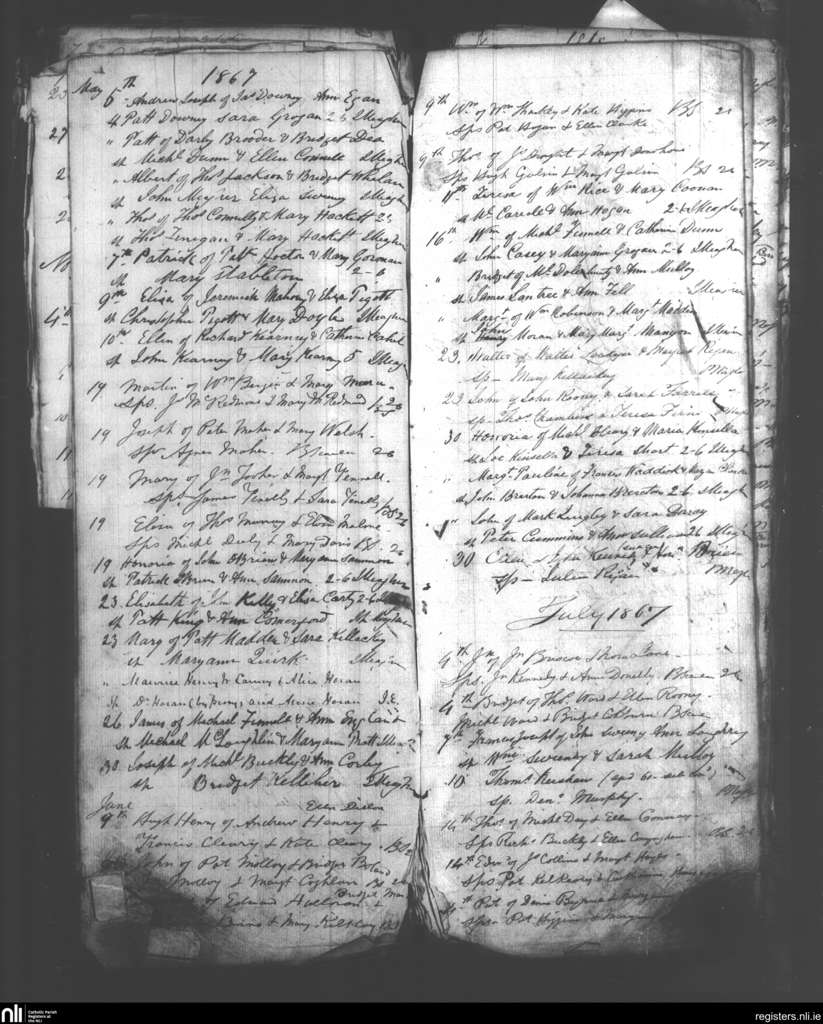 Birr and Loughkeen; County of Offaly, Tipperary; Diocese of Killaloe. Baptisms, May 1867 to July 1867