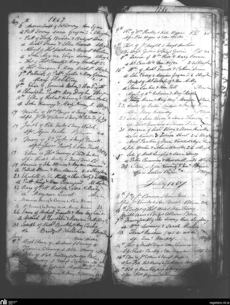 Birr and Loughkeen; County of Offaly, Tipperary; Diocese of Killaloe. Baptisms, May 1867 to July 1867