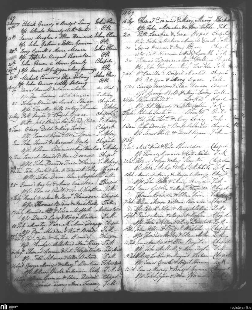 Birr and Loughkeen; County of Offaly, Tipperary; Diocese of Killaloe. Marriages, Feb. 1849 to Feb. 1850