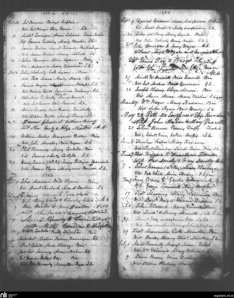 Birr and Loughkeen; County of Offaly, Tipperary; Diocese of Killaloe. Marriages, Oct. 1853 to July 1854
