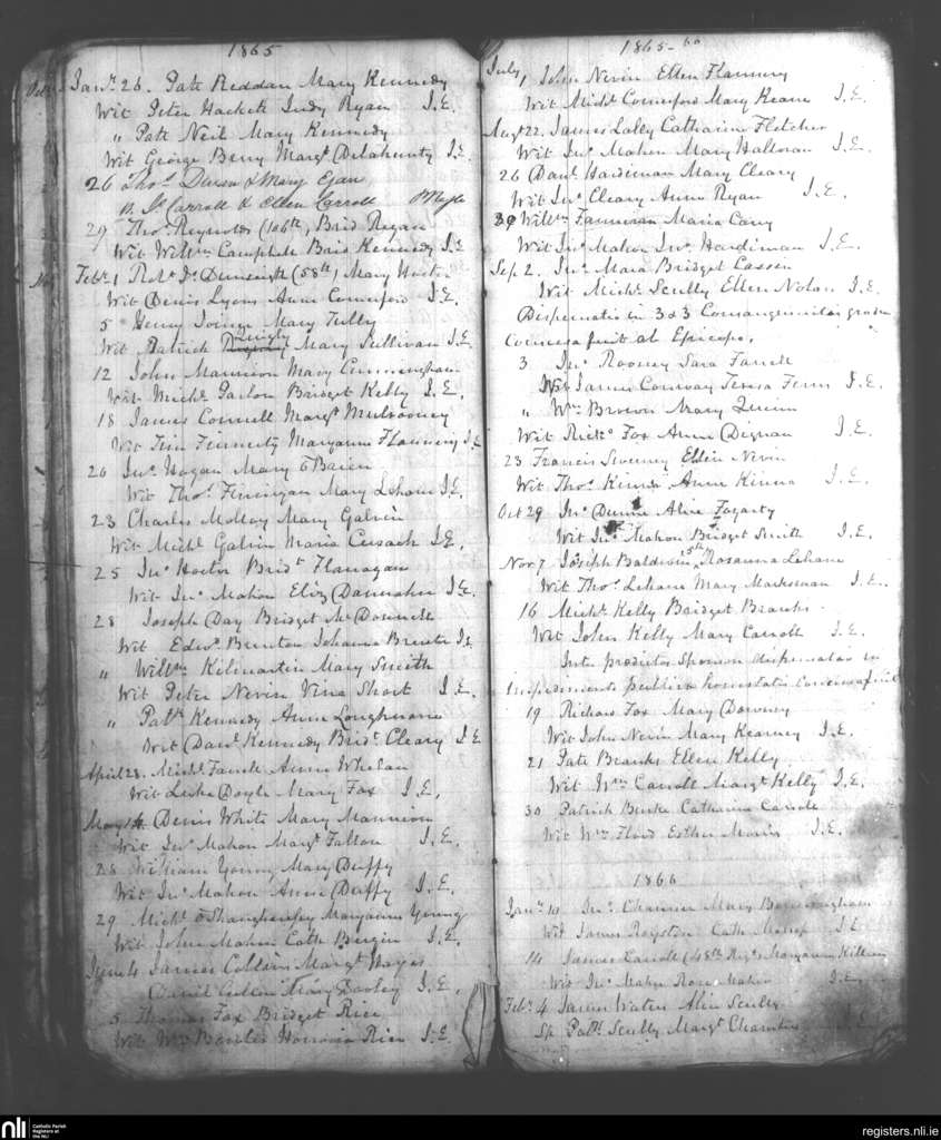 Birr and Loughkeen; County of Offaly, Tipperary; Diocese of Killaloe. Marriages, Jan. 1865 to Feb. 1866