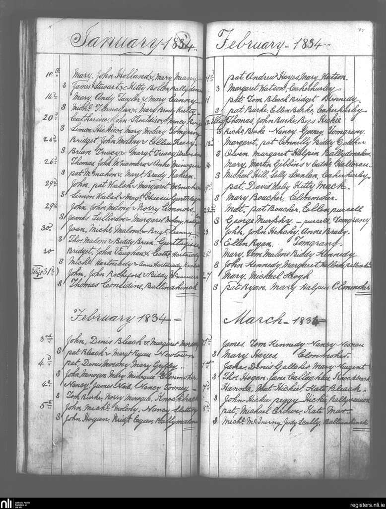 Kilnoe; County of Clare; Diocese of Killaloe. Baptisms, Jan. 1834 to Mar. 1834