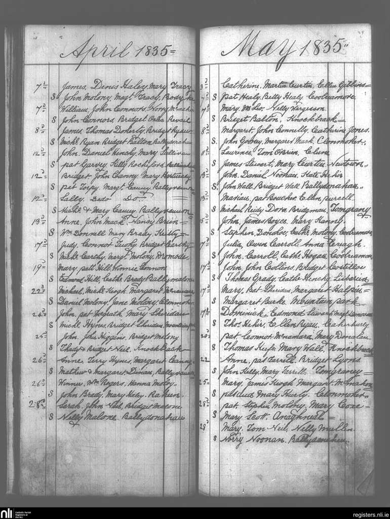 Kilnoe; County of Clare; Diocese of Killaloe. Baptisms, Apr. 1835 to May 1835