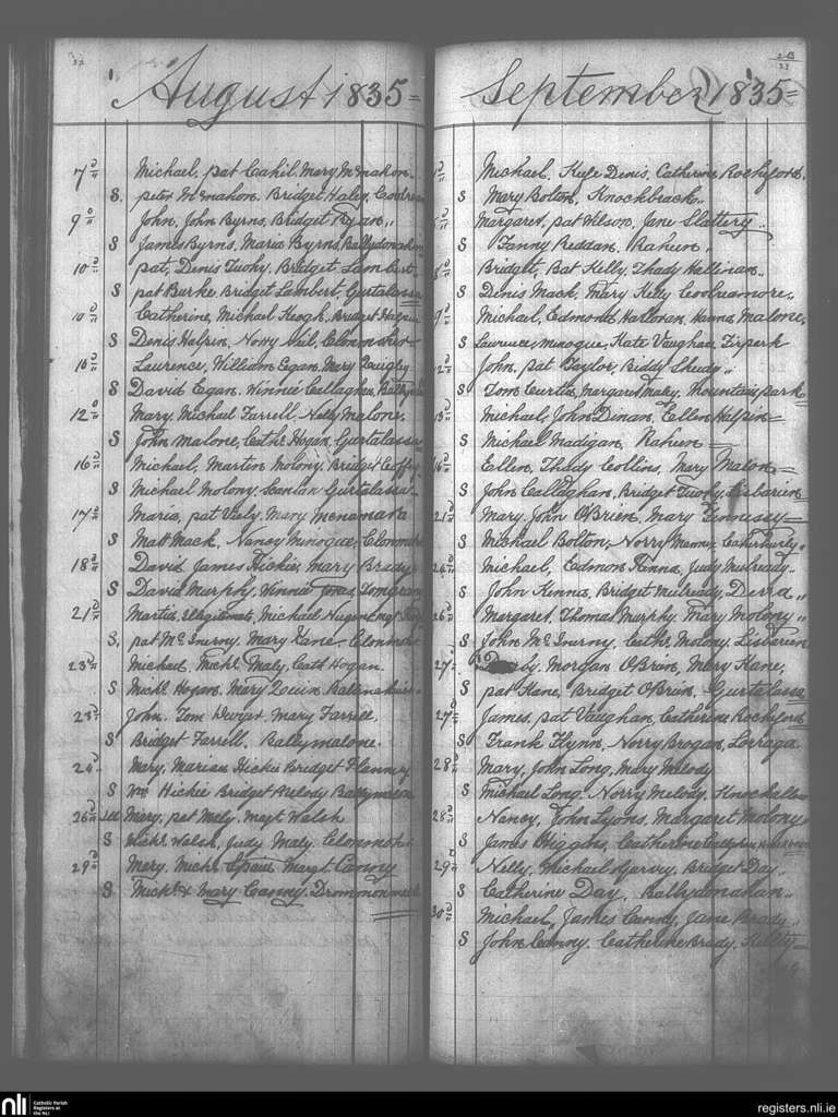 Kilnoe; County of Clare; Diocese of Killaloe. Baptisms, Aug. 1835 to Sep. 1835
