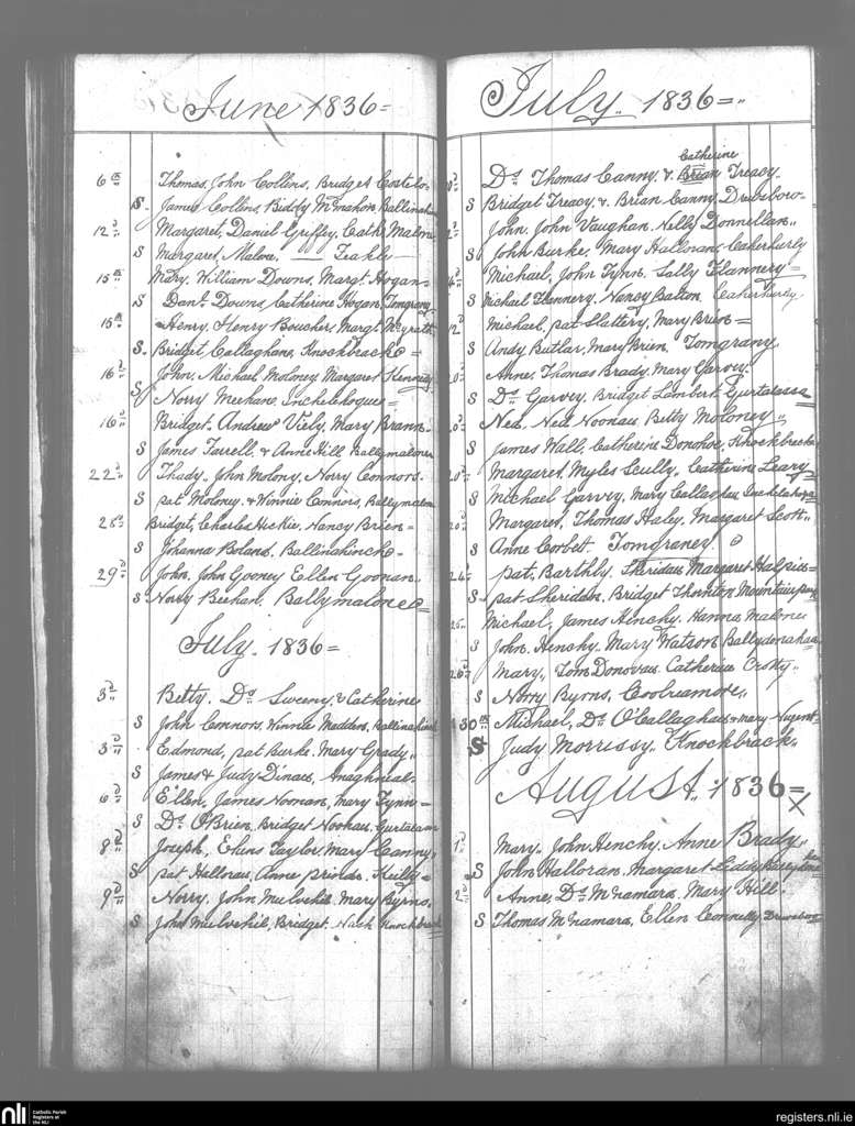 Kilnoe; County of Clare; Diocese of Killaloe. Baptisms, June 1836 to Aug. 1836