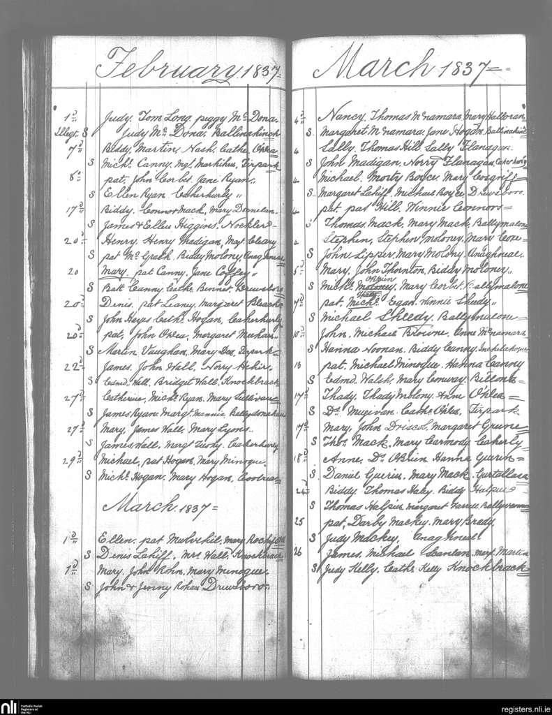 Kilnoe; County of Clare; Diocese of Killaloe. Baptisms, Feb. 1837 to Mar. 1837
