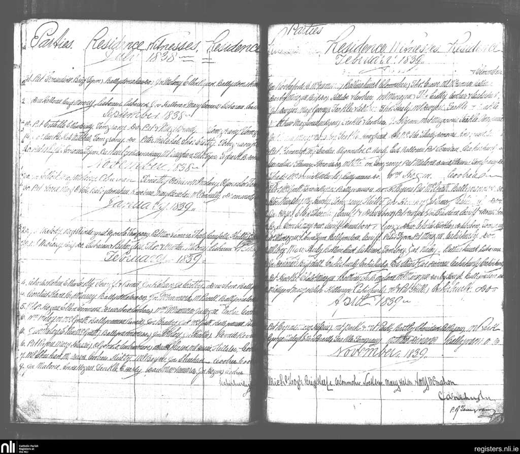 Kilnoe; County of Clare; Diocese of Killaloe. Marriages, July 1838 to Nov. 1839