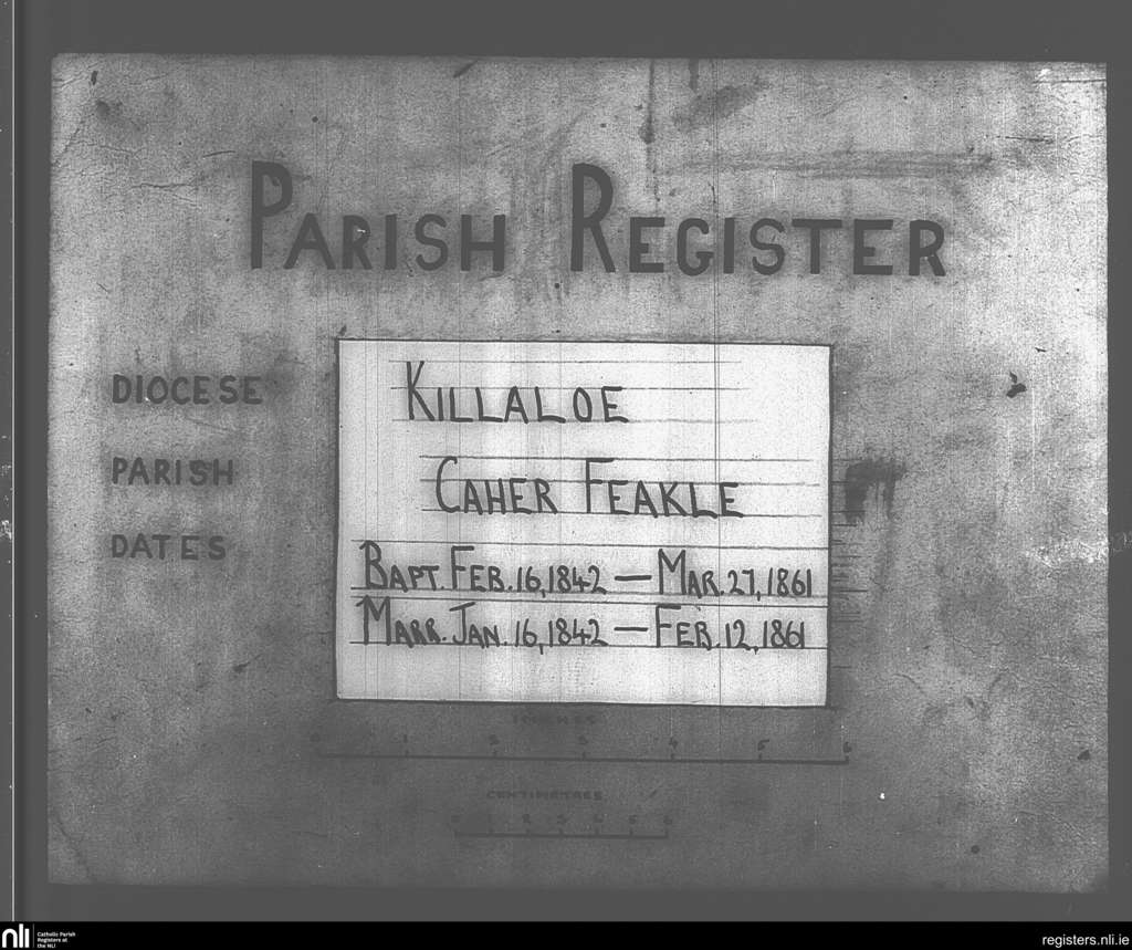 Caher Feakle; County of Clare; Diocese of Killaloe. Baptisms, Marriages