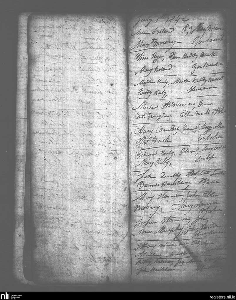 Caher Feakle; County of Clare; Diocese of Killaloe. Baptisms, July 1842