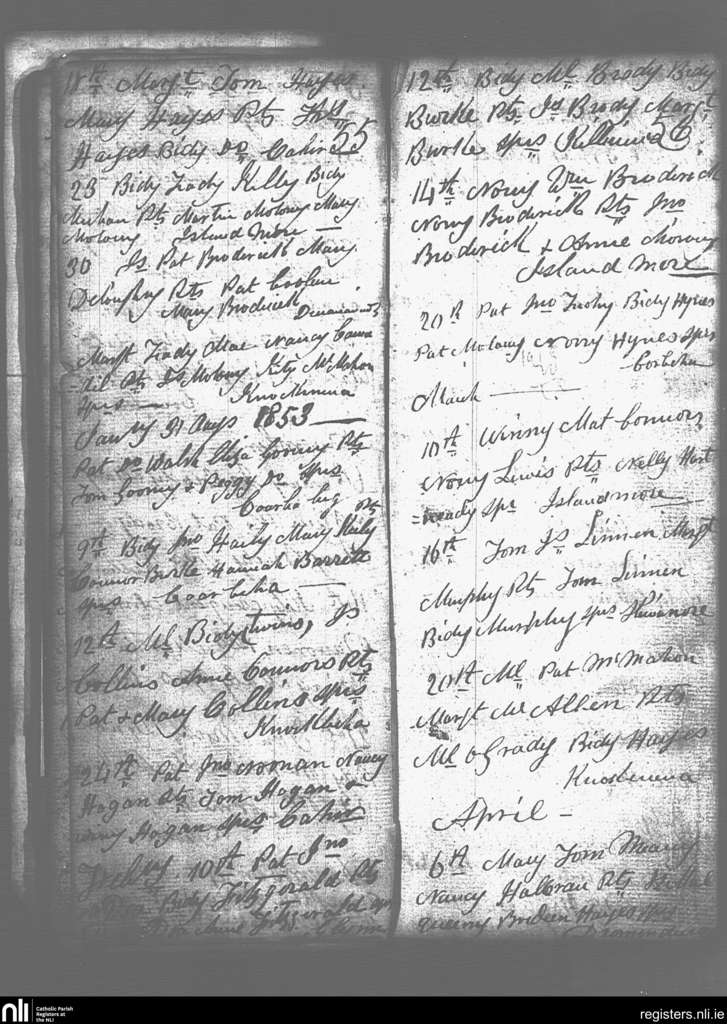 Caher Feakle; County of Clare; Diocese of Killaloe. Baptisms, Dec. 1852 to Apr. 1853