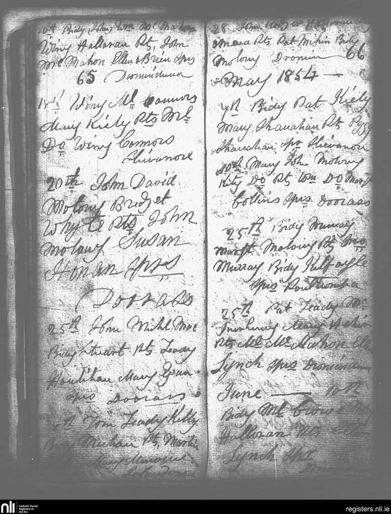 Caher Feakle; County of Clare; Diocese of Killaloe. Baptisms, Apr. 1854 to June 1854