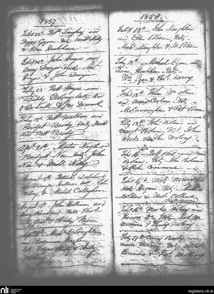 Caher Feakle; County of Clare; Diocese of Killaloe. Marriages, Feb. 1857 to Feb. 1858