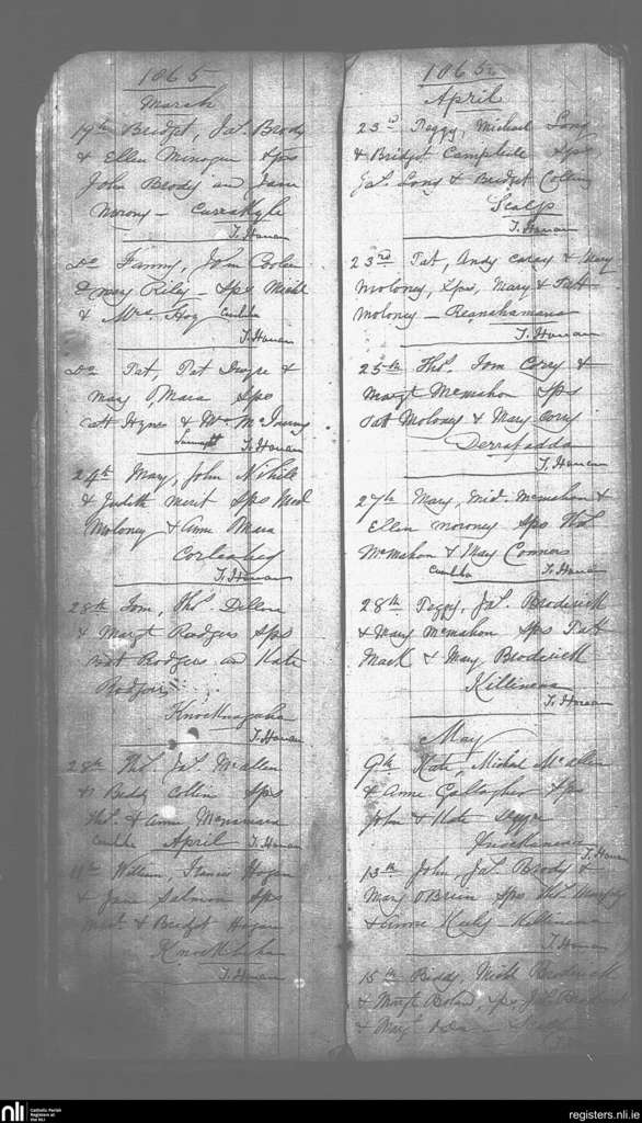 Caher Feakle; County of Clare; Diocese of Killaloe. Baptisms, Mar. 1865 to May 1865