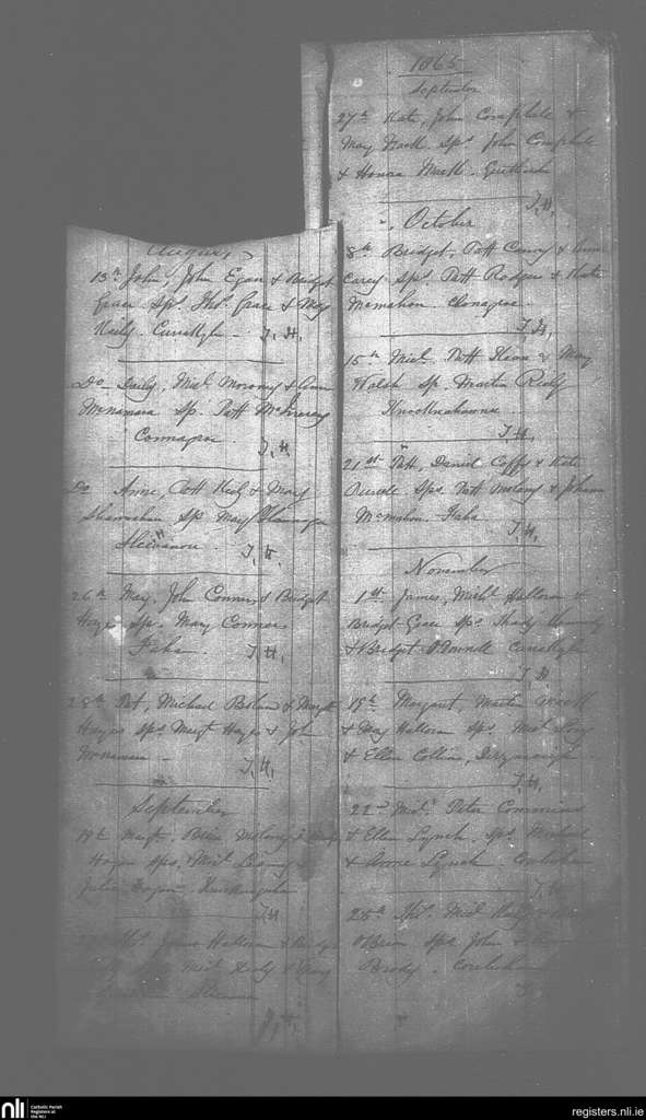 Caher Feakle; County of Clare; Diocese of Killaloe. Baptisms, July 1865 to Nov. 1865