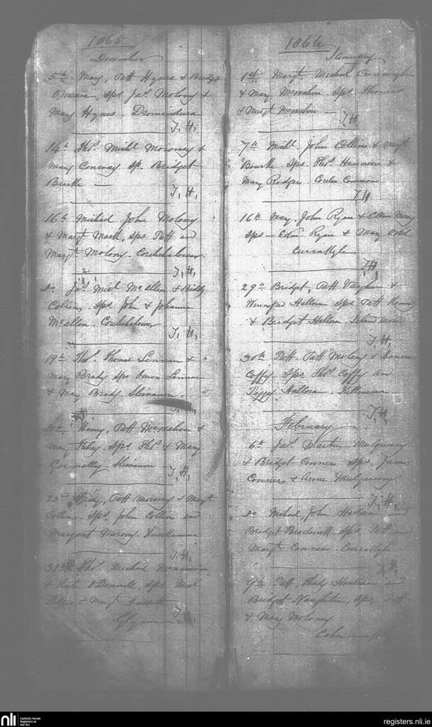 Caher Feakle; County of Clare; Diocese of Killaloe. Baptisms, Dec. 1865 to Feb. 1866