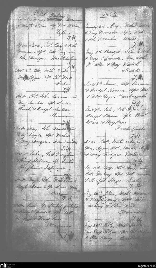 Caher Feakle; County of Clare; Diocese of Killaloe. Baptisms, Nov. 1867 to Jan. 1868