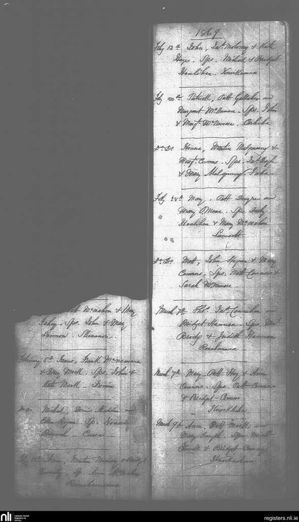 Caher Feakle; County of Clare; Diocese of Killaloe. Baptisms, Feb. 1869 to Mar. 1869