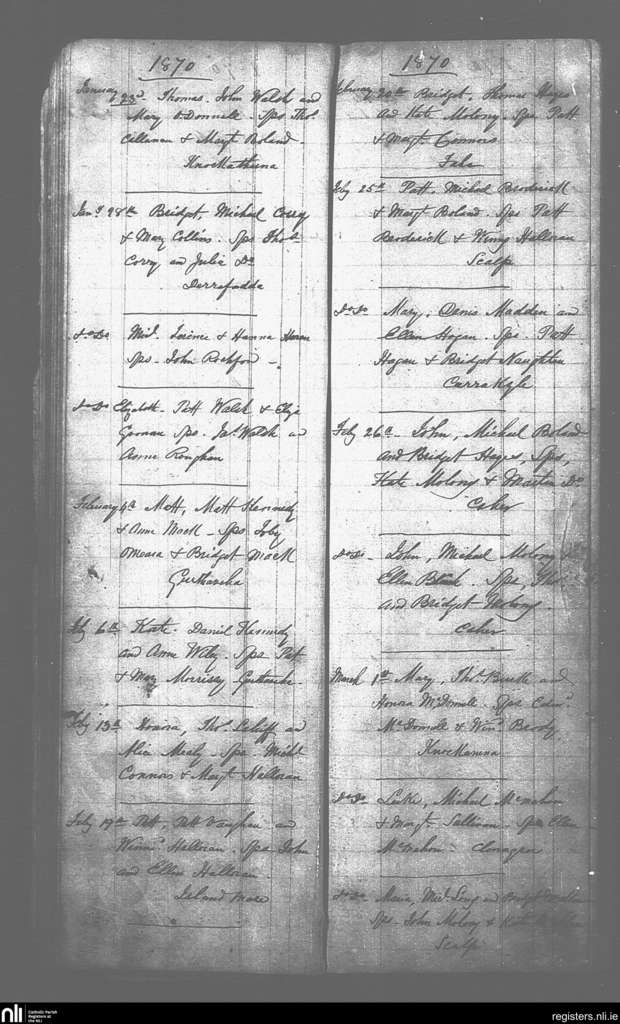 Caher Feakle; County of Clare; Diocese of Killaloe. Baptisms, Jan. 1870 to Mar. 1870