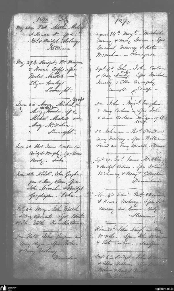 Caher Feakle; County of Clare; Diocese of Killaloe. Baptisms, May 1870 to Dec. 1870