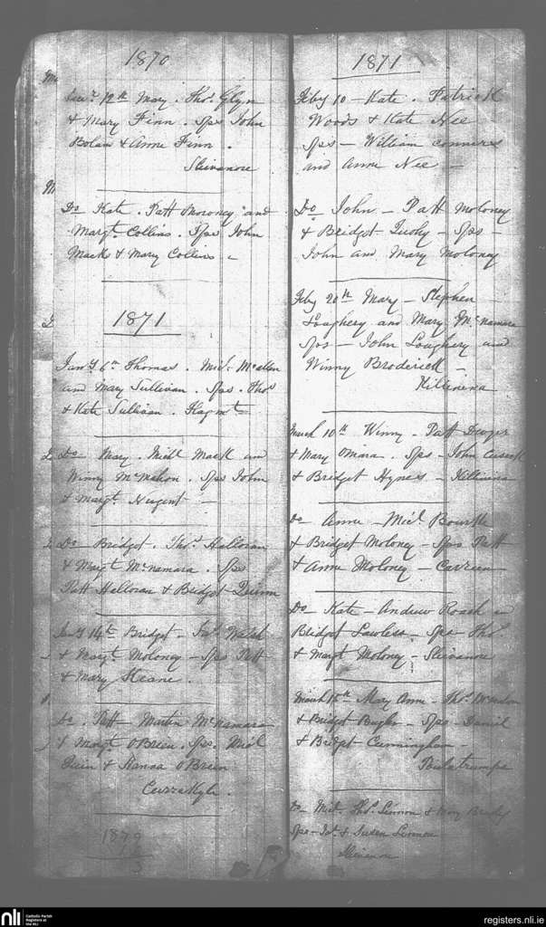 Caher Feakle; County of Clare; Diocese of Killaloe. Baptisms, Dec. 1870 to Mar. 1871