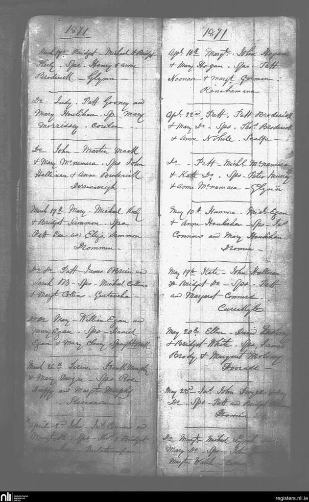 Caher Feakle; County of Clare; Diocese of Killaloe. Baptisms, Mar. 1871 to May 1871