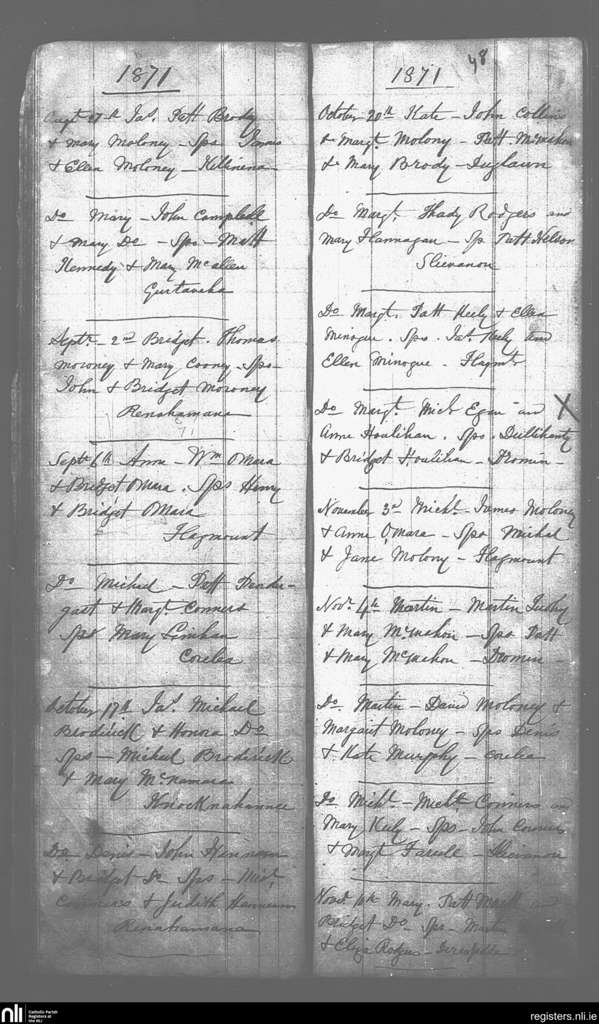 Caher Feakle; County of Clare; Diocese of Killaloe. Baptisms, Aug. 1871 to Nov. 1871