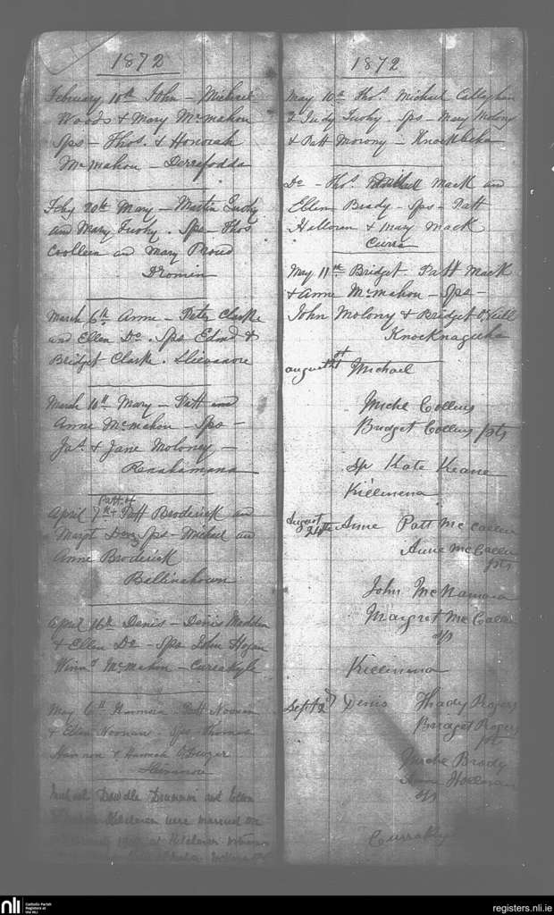 Caher Feakle; County of Clare; Diocese of Killaloe. Baptisms, Feb. 1872 to Sep. 1872