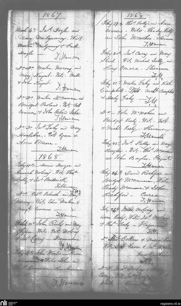 Caher Feakle; County of Clare; Diocese of Killaloe. Marriages, Mar. 1867 to Feb. 1868
